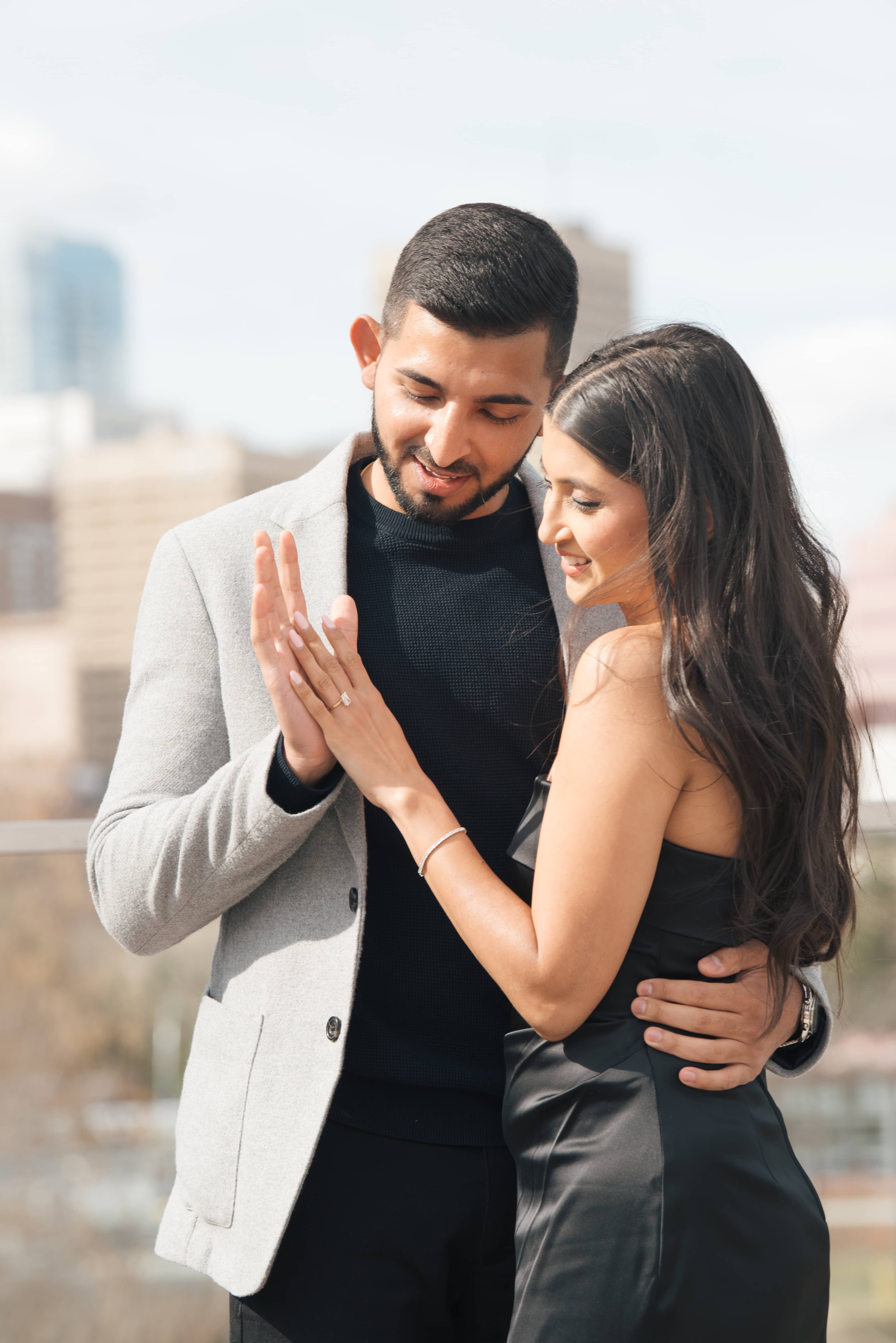From then on, their connection continued to deepen. Through every phase of life, building their careers, laughs, and all the growing pains, Bhavna and Akhil stuck by each other. Finally, after 7 years of being “fam”, as Akhil graduated Dental school, he knew that he had to make sure Bhavna knew how important she was to him. He saved for years to buy Bhavna’s engagement ring and was finally able to propose — thank god she said yes!