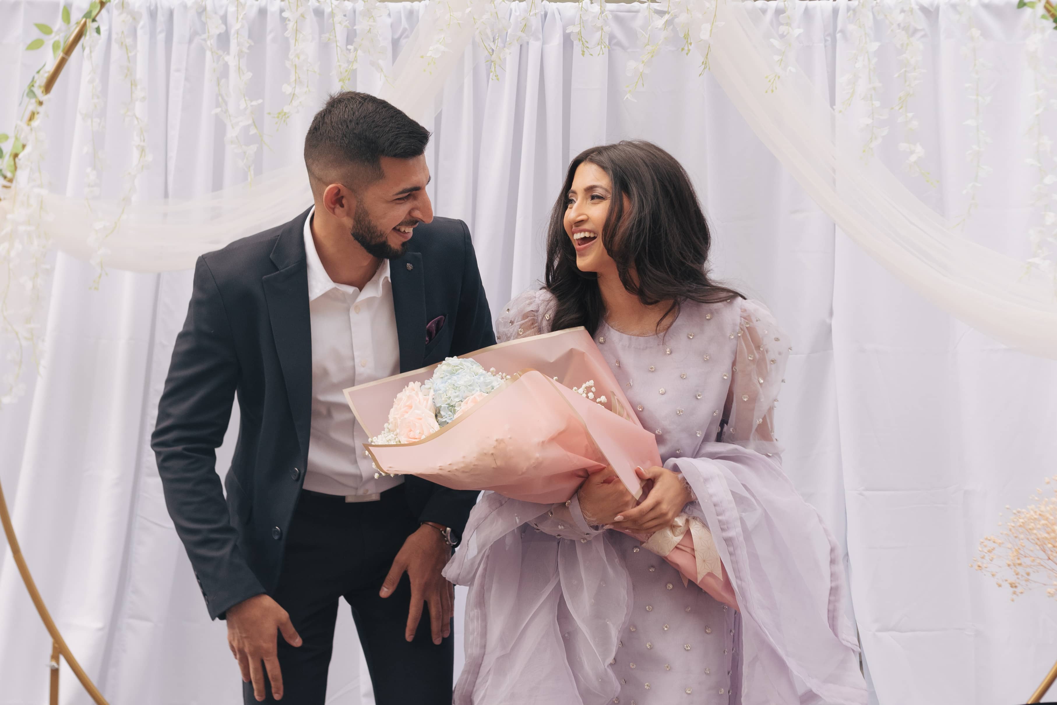 Akhil and Bhavna’s love story begins from their college days. Akhil tried multiple times to get Bhavna’s attention and ultimately failed. Fast forward a few years, and fate decided to give it another shot. Akhil was invited to Bhavna’s 21st birthday, and in true Akhil fashion, he didn’t hold back. Confidently, he asked Bhavna if she’d be his plus one for the evening. What she didn’t know was that she was signing up to be his plus one for the rest of her life. They spent their whole first year just as “friends” , or as inside joke they used to call each other “fam”. Turns out, Bhavna had a crush on Akhil since high school but she was playing hard to get….for YEARS!!
