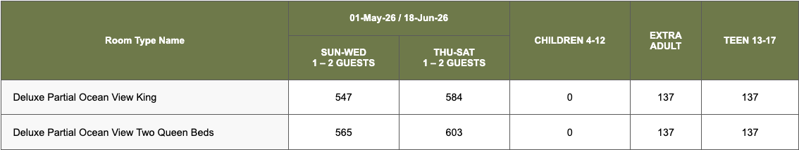 Discounted upgraded room categories outside of the wedding group block.