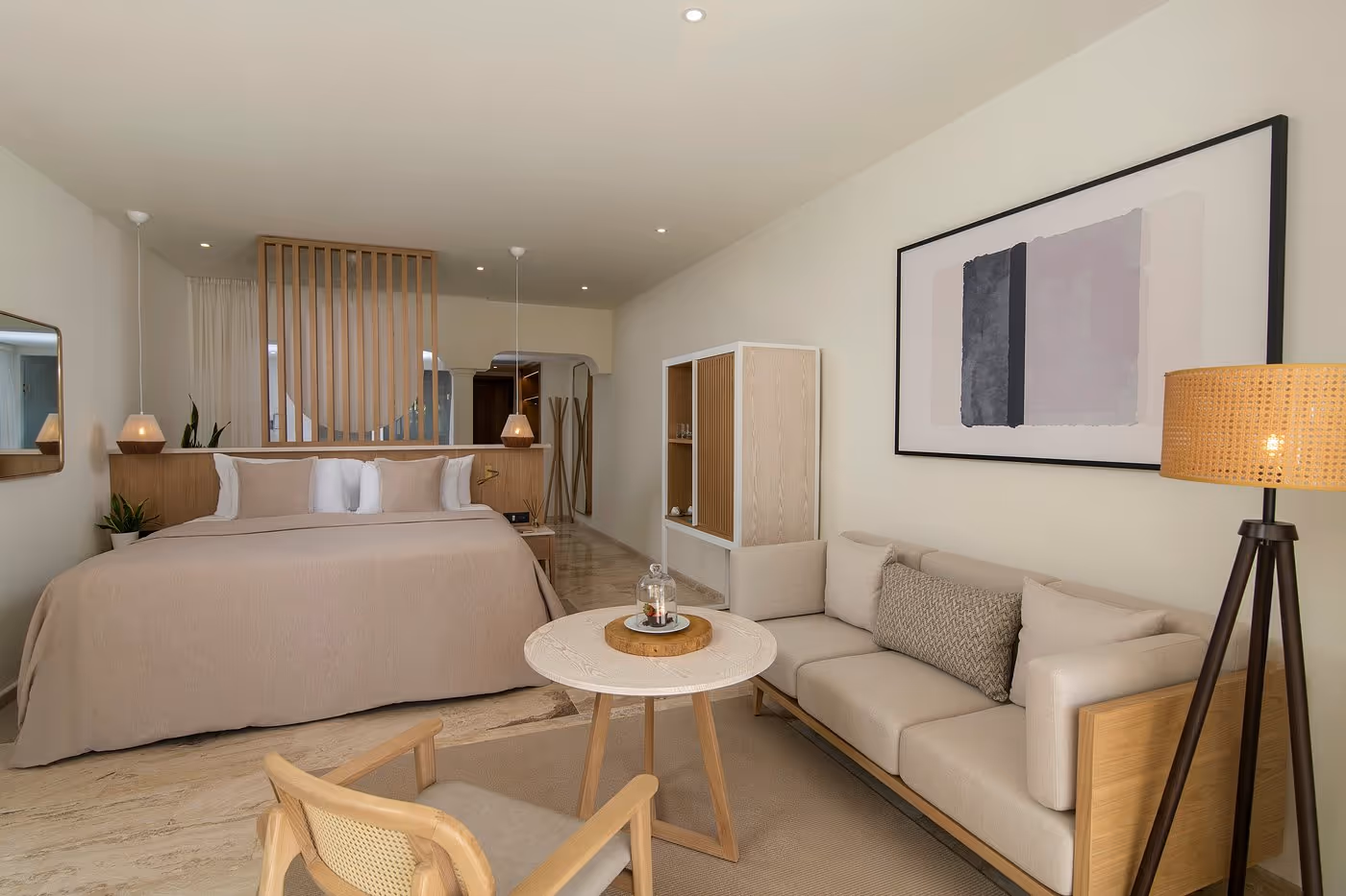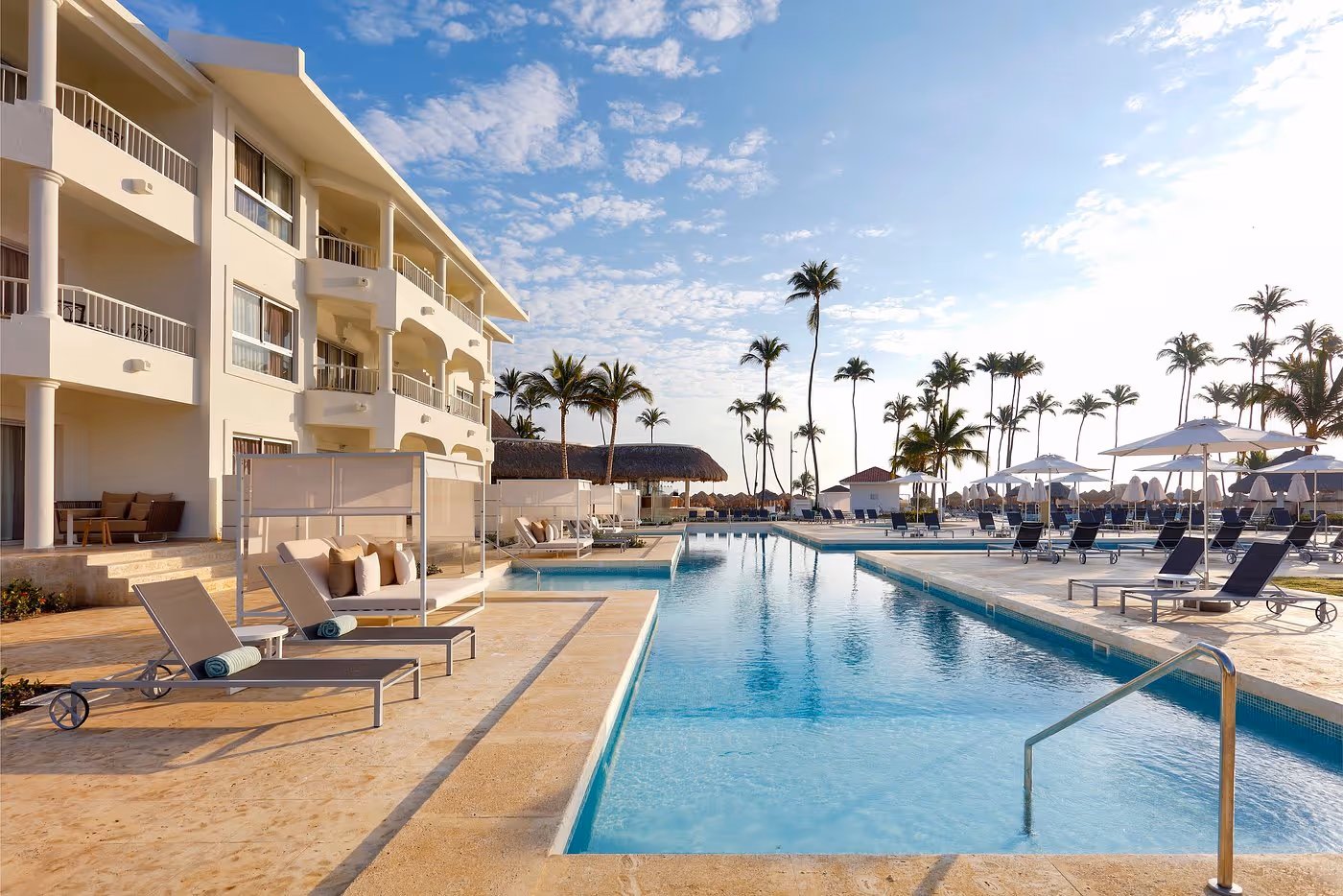 Nestled on the powder‑white sands of Playa Bávaro, Paradisus Palma Real offers a deluxe all‑inclusive escape with lush tropical gardens, sparkling pools, and the shimmering Caribbean sea as its backdrop. The resort features more than 550 elegant suites—including junior, swim‑up and upgraded categories—with refined décor, furnished balconies or terraces, whirlpool‑tubs and daily‑restocked minibars. Many rooms overlook the beach or the gardens, letting you wake to the gentle sound of surf or birds in the palms. Following a major renovation, the property now blends natural materials, neutral tones and contemporary comfort to craft a soothing, high‑end ambience.