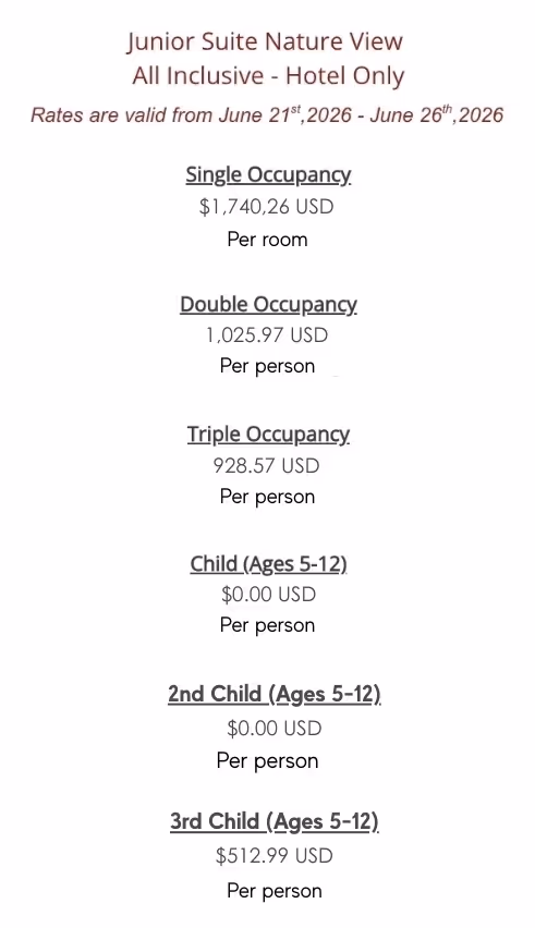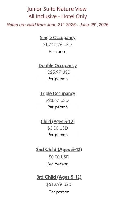 Hotel Only - All-Inclusive (Rates are valid for 5 nights, June 21-26, 2026)